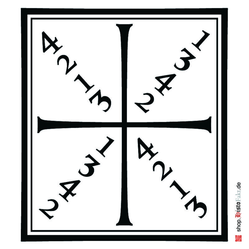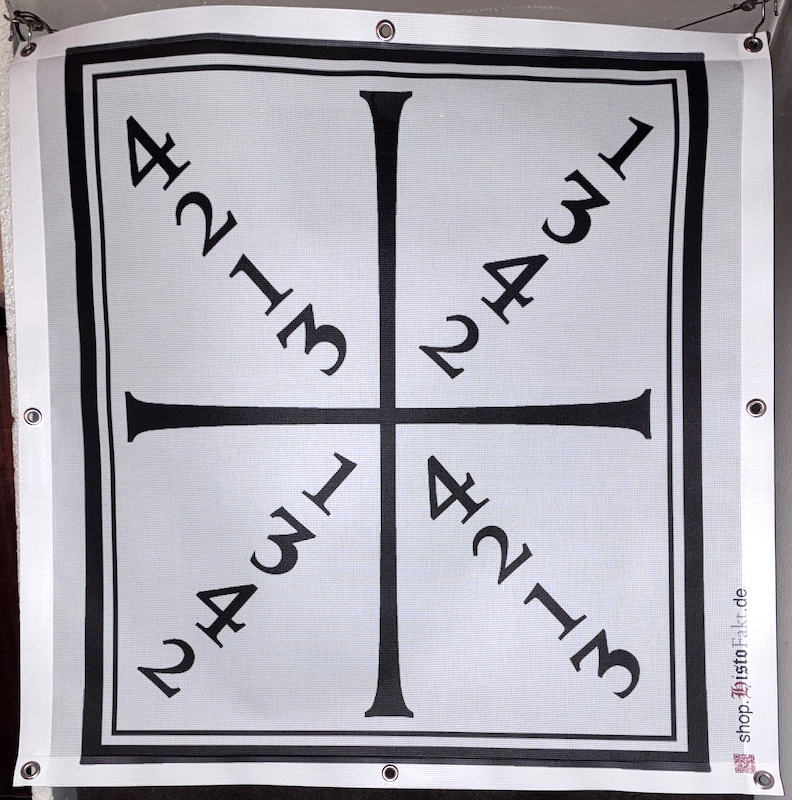 Mesh banner of Joachim Meyer's diagram of the four openings as a training aid for hanging up as.