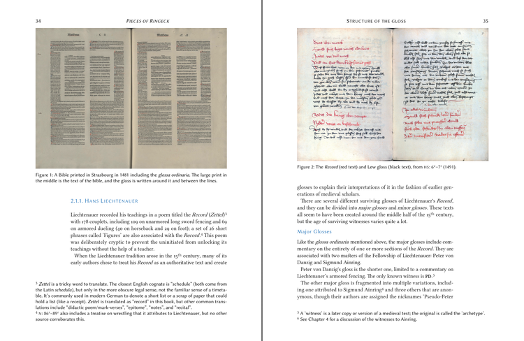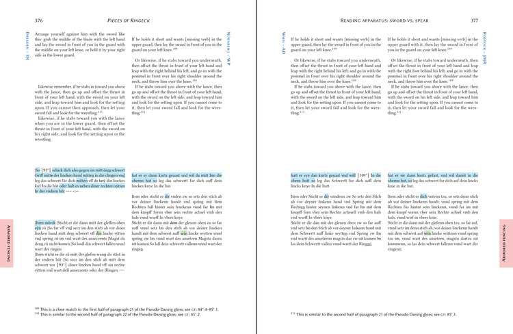 Included is a new translation of Ainring’s gloss on the unarmored sword and the spear and sword in armor, on horse and on foot, streamlined for easier reading and based on 20 years of advancement in our understanding of Liechtenauer’s art; the translation of the long sword also includes illustrations from the Cluny Fechtbuch, the Glasgow Fechtbuch, and other sources for the first time. In addition, each copy of Ainring’s text is transcribed and translated separately, arranged side-by-side so they can be easily compared. To round this off, it features introductory material about Johannes Liechtenauer, Sigmund Ainring, Hans Medel, and Albrecht of Bavaria, as well as a discussion of the gloss tradition and the structure of Liechtenauer’s teachings and a codicological study of all nine manuscripts included in this book.