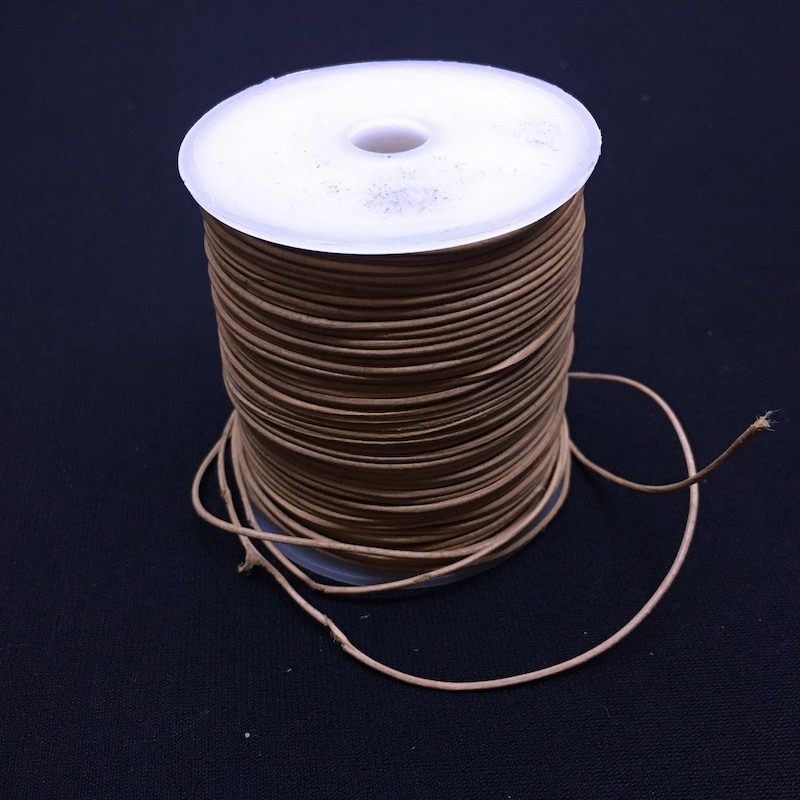 Rundes Lederband von 1 mm Durchmesser als Endlosriemen in schwarz und natur.