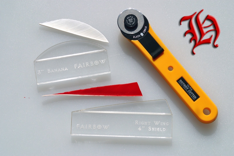 Die neuartigen Befiederungsformen verfügen über eine Kerbe, die den Kiel der Feder aufnimmt, so dass diese nicht verrutschen kann. Zum Beschneiden wird nur noch eine geeignete Unterlage und ein Rollcutter benötigt. So lassen sich die beliebtesten Federformen schnell, einfach und präzise zuschneiden (immer von hinten nach vorne)!